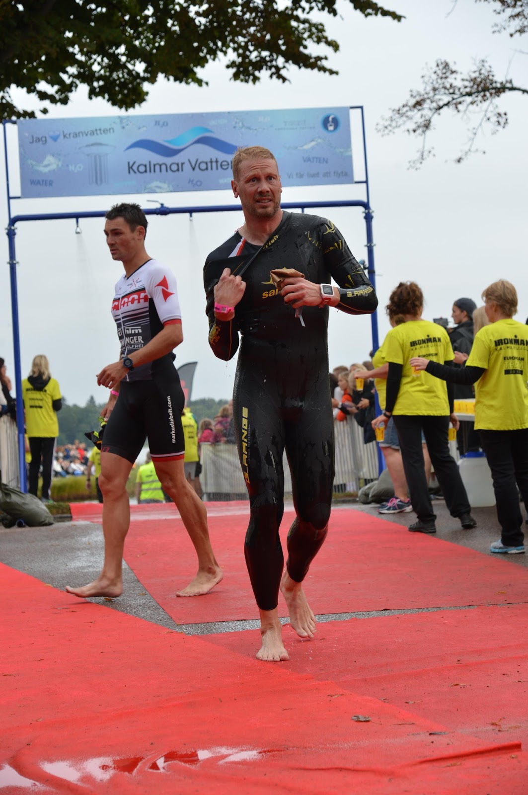Kalmarin suureen liikenneympyrään ajoin kuin kuoleman hiljaisuudessa, selostaja oli hiljentänyt tuhatpäisen yleisön… joka räjähti huutoon ja kannustukseen kun ajoin sovitun pisteen läpi. Adrenaliini virtasi yleisömeren pauhuessa ja hymyä ei saanut naamalta enää pois. Kyllä svedut osaa kannustaa! Mantereen kierroksella ajelinkin aivan omilla. Pekka ja Tomer ajoi yhdessä kohtaa vastaan ja laskeskelin, kaulat, 4min ja 8min eli kaikkilla homma hallussa! Joku siinä Ironman fillarin viimeisissä kilsoisssa vaan on, että pyörä olis melko halvalla myynnissä… 4:52 aika ja 264W avg. T2:lle ja pakko oli tyhjentää paineet.