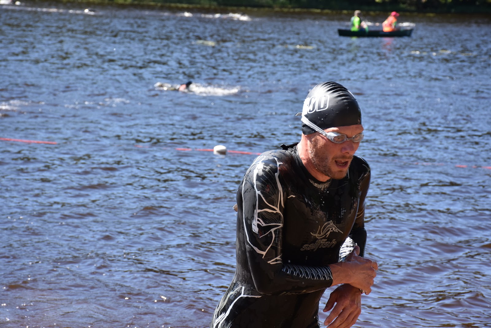 Uinti: Kauden eka uintistartti ja aika ahdas ja kova kisa keulapaikoista ennen starttia. Mentiin jostain mielenhäiriöstä oikeeseen laitaa ja Teron kanssa oli idis vähän yrittää jeesailla uintiosuudella toisiamme. Pam ja samantien Teron ensimmäinen kahmaisu suoraan mun vasempaan silmään ja lasi täyteen vettä ja muutenkin pää sekaisin. Siitä kuitenkin painimaan paikasta ekalle poijulle asti. Homma tasaantui ja takasuoralla Darby ui oikealla puolella ja tiesin, että jos tullaan samaan aikaan vaihtoon niin en kerkee samaan junaan.